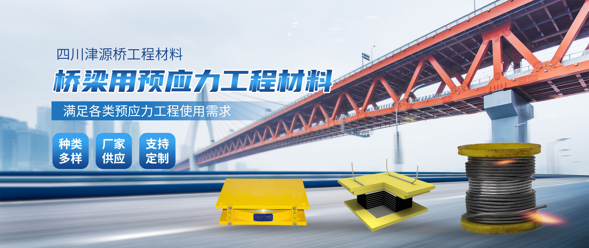 四川津源橋工程材料有限公司是專業從事、預應力錨具、預應力波紋管、預應力鋼絞線、橋梁支座、橋梁伸縮縫、建筑減隔震支座、防落梁裝置、聲測管、邊坡防護錨索等產品的生產與銷售。我司奉行:顧客第一、信譽第一...